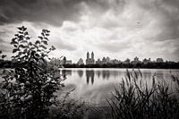 New York in zwart-wit: een impressie van Central Park, met uitzicht op het Jacqueline Kennedy Onassis Reservoir.