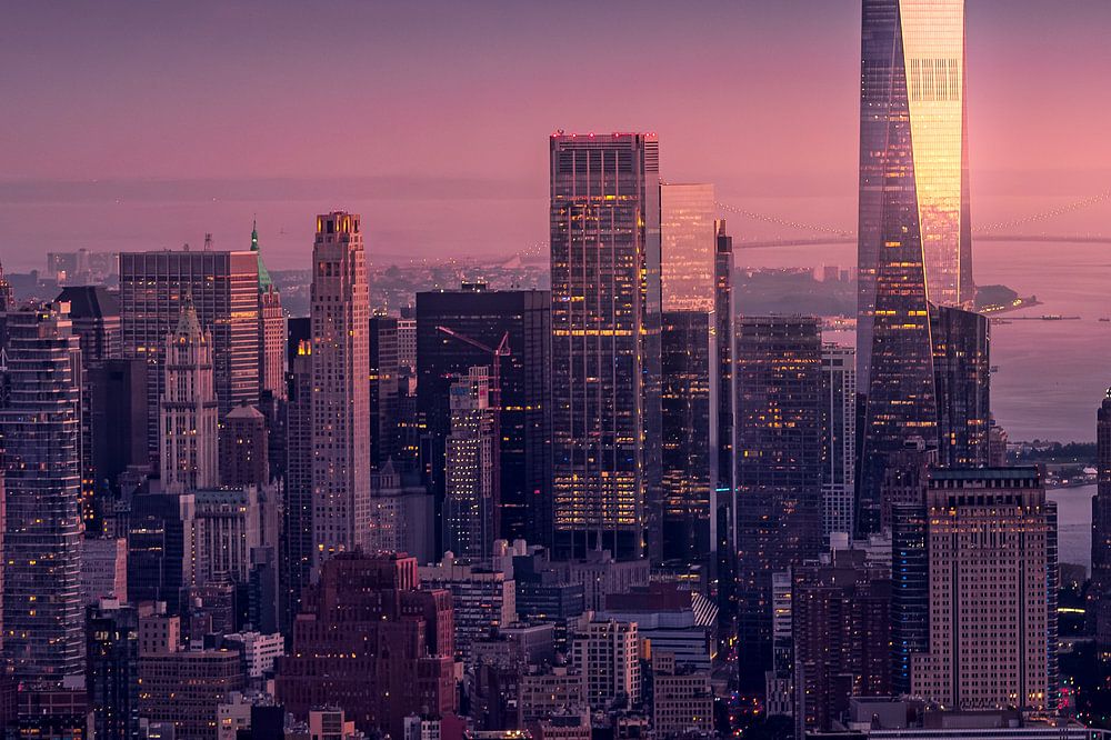 De foto is gemaakt vanaf het observatieplatform The Edge en biedt uitzicht over het Financial District in het stadsdeel Manhattan, met onder andere het wereldberoemde One World Trade Center (eerder bekend als Freedom Tower).