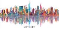Over ‘New York City skyline in abstracte kleurstrepen met reflectie’ van MArt