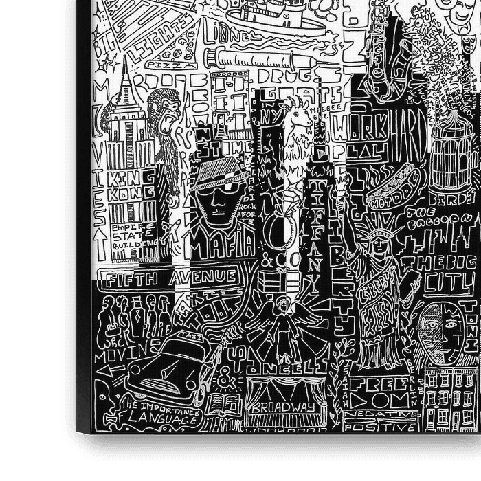 Koop dit Popart kunstwerk New York Doodle van Nele VdM op canvas, aluminium dibond, (ingelijste) fotoprint, behang en ArtFrame, op maat geprint in Fine-Art kwaliteit.