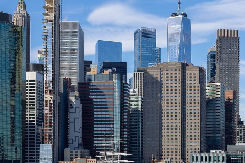 De skyline wordt gedomineerd door het One World Trade Center, dat met zijn hoogte van 541 meter symbool staat voor de veerkracht en vooruitgang van de stad. Daarnaast staan andere opvallende gebouwen zoals het Woolworth Building met zijn neogotische architectuur en het slanke 8 Spruce Street van Frank Gehry.