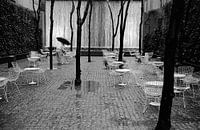 Regenachtige dag in New York. Gefotografeerd in de buurt van het Metropolitan Museum of Art. Foto gemaakt in 1989 op Kodak zwartwit film.