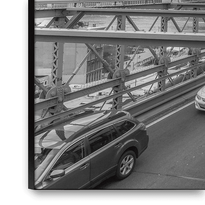 Koop de foto New York Skyline - Brooklyn Bridge ZW van Fikri calkin op canvas, aluminium dibond, (ingelijste) fotoprint, behang en ArtFrame, op maat geprint in Fine-Art kwaliteit.
