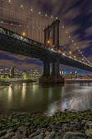 Deze foto van de skyline van Manhattan Bridge en de Brooklyn Bridge heb ik gemaakt op een avond in mei 2016. Tussen de staander van de Manhattan Bridge is de toren van het nieuwe World Trade Center te zien, de Freedom Tower.