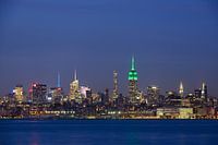 New York Skyline in de avond - Midtown Manhattan. Het meest prominente gebouw is het Empire State Building. Je ziet onder andere ook het bekende Chrysler Building.