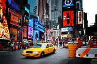 Typisch New York: Een "Yellow Cab" passeert Times Square met zijn vele kleurrijke neonreclames. Het feit dat deze stad "nooit slaapt" is hier bijzonder duidelijk: of het nu dag of nacht is, Times Square is altijd fel verlicht, mensen bewegen zich over Times Square in dicht opeengepakte menigten, gele taxi's rijden voorbij, je hoort oorverdovende sirenes, autogeluiden, claxons, toeristenbussen, muziek en nog veel meer.... Gewoon New York!