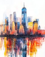 De skyline van New York krijgt een nieuwe dimensie in deze aquarelcompositie. Met zachte, vloeiende penseelstreken worden de iconische gebouwen weerspiegeld in een glinsterend wateroppervlak, waarbij de levendige energie van de stad en de rust van het water samenkomen. De aquareltechniek brengt een dromerige kwaliteit naar voren, waarin…