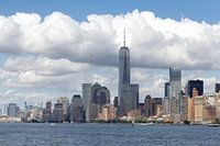 Prachtig panorama van New York, in kleur, vanaf het water gezien met oa de Freedom Tower. Op de achtergrond een mooie wolkenpartij. De afbeelding is er ook in zwart-wit en zacht-sepia kleur.