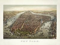 Koop New York in vogelvucht - 1873 als reproductie op canvas, aluminium dibond, (ingelijste) fotoprint, behang en ArtFrame, op maat geprint in Fine-Art kwaliteit.