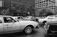 Taxi in Manhattan New York. Foto gemaakt in 1989 op Kodak zwart wit film.