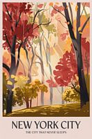 Dit kunstwerk schittert in warme herfstkleuren en brengt de magische sfeer van New York City tot leven. De zachte lichtstralen die door de bomen breken nodigen je uit om te dromen. Het past perfect in de woonkamer, waar het gesprekken stimuleert en een ontspannen, inspirerende stemming creëert.