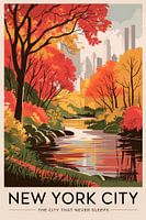 In levendige rood- en geeltinten straalt het herfstlandschap van New York een rustige schoonheid uit, terwijl de skyline op de achtergrond de pulserende stad verraadt. De glinsterende rivier weerspiegelt de levendige kleuren. Dit kunstwerk is perfect voor de woonkamer en brengt een harmonieuze combinatie van natuur en stedelijke levensstijl in je huis.