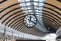 Koop de foto Newcastle Station klok. van Richard Wareham als print op canvas, aluminium dibond, (ingelijste) fotoprint, behang en ArtFrame. Voor jou op maat geprint in Fine-Art kwaliteit.