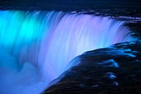 Niagara watervallen op de grens tussen Canada en Noord Amerika in verlichte kleurenpracht bij nacht.