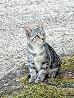 Kleine Niblet is zo gegroeid dat ze bij haar naam past, want ze is niet groter geworden sinds ze zes maanden oud was. Hoewel ze eruit ziet als een kitten is ze een pittig klein ding en erg mooi. Hier kijkt ze wel een beetje bezorgd naar iets dat haar volle aandacht heeft!