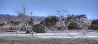 Aan de Chobe rivier verzamelen vele dieren zich om wat te drinken en te eten. Zo ook deze giraffen.