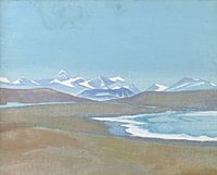 Nicholas Roerich (1874-1947) was een Russische schilder, schrijver, archeoloog, theosoof en vredesactivist. Hij werd bekend om zijn symbolistische en spirituele schilderijen, vaak geïnspireerd door de natuur, mythologie en de mystiek van de Himalaya. Roerich zette zich sterk in voor het behoud van cultuurgoederen en initieerde het zogenaamde "Roerich Pact", een internationale overeenkomst om culturele instellingen te beschermen tijdens oorlog. Samen met zijn vrouw Helena ontwikkelde hij een spirituele filosofie genaamd Agni Yoga. Het werk van Roerich combineert kunst, esoterie en humanistische idealen op een unieke manier.