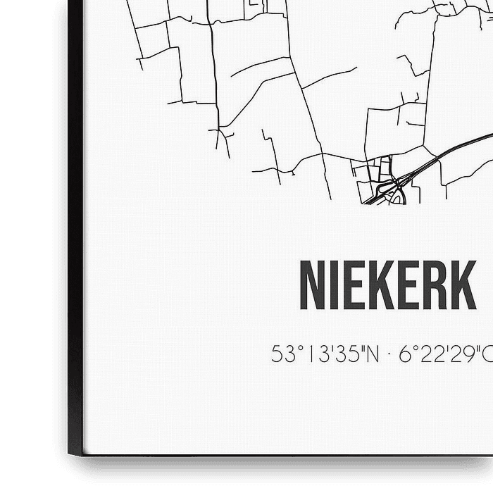 Koop dit abstracte kunstwerk Niekerk (Groningen) | Landkaart | Zwart-wit van Stad & Wand op canvas, aluminium dibond, (ingelijste) fotoprint, behang en ArtFrame, op maat geprint in Fine-Art kwaliteit.