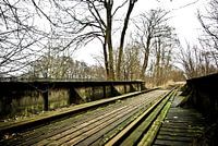 Overwoekerd door de wildernis, bij een houten brug