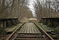 Overwoekerd door de wildernis, bij een houten brug