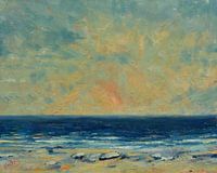 Geen boot, geen meeuw, niks alleen maar water en lucht. Genieten en wegdromen.