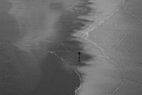 Deze foto is genomen op het strand van Piha (beroemd vanwege zijn surfers en golven). Foto is van bovenaf genomen. De "Rich BW" functie van Sony gebruikt wat je kan zien als een HDR foto alleen dan zwart wit.