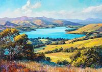 Nieuw-Zeeland Kunst | Whispering Valleys - Dit landschap schilderij toont een typisch Nieuw-Zeelandse setting, kenmerkend voor zijn levendige natuur en adembenemende vergezichten.