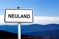 Het teken met het opschrift Neuland staat synoniem voor een nieuw begin en het betreden van nieuwe wegen.