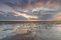 'Nieuw leven' is gefotografeerd aan de Waddenzee nabij Wierum (Friesland, Nederland). Een schitterend stuk natuur. Deze morgen viel de zonsopkomst samen met laag water. Door het droogvallen van het wad, werden de jonge planten zichtbaar.