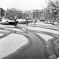 Nieuwe Haven Dordrecht in de sneeuw met ijs op het water.