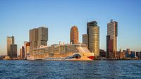Op een mooie namiddag en avond maakte ik deze foto's aan de Nieuwe Maas met zicht op de Kop van Zuid. Rotterdam met zijn prachtige Erasmusbrug en vele bezienswaardigheden. Helemaal gaaf is het als er zo'n groot cruiseschip aan de kade ligt.