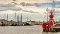 Zicht op de Nieuwe Willemshaven in Harlingen. Zeesleepboot Holland op z'n stek.