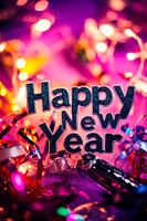 Een sprankelend kleurenfestival viert de jaarwisseling! Met stralende lichtjes en een vrolijk "Gelukkig Nieuwjaar" straalt deze compositie levensvreugde en een nieuw begin uit. Ideaal voor een woonkamer, creëert het een uitnodigende sfeer voor oudejaarsfeesten en herinneringen aan onvergetelijke momenten met vrienden en familie.