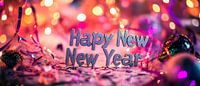 Een sprankelend festival van kleuren en lichtjes wekt de geest van het nieuwe jaar. Glinsterende decoraties en de oprechte wens "Gelukkig Nieuwjaar" stralen vreugde en hoop uit. Dit levendige tafereel is perfect voor de woonkamer om gasten te verwelkomen en een feestelijke sfeer te creëren die de verwachting van een nieuw begin belichaamt.