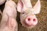 Prachtige opname van een jong nieuwsgierig varkensneusje die komt kijken of er nog wat te snaaien valt in de kinderboerderij in Nederland