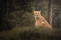 Deze prachtige cheetah (of jachtluipaard) was heerlijk van de rust aan het genieten, maar keek toch even uit nieuwsgierigheid mijn kant op en leek erg geinteresserd in mijn camera en grote lens.