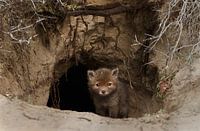 De blik in de ogen van deze jonge welp die nog een hele nieuwe wereld te ontdekken heeft. Hij staat nu bij de ingang van het veilige hol waar hij geboren is.