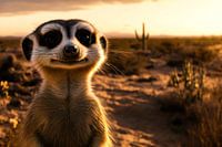 Nieuwsgierige meerkat in woestijn van Art & Soul Creations