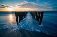 Zonsondergang in Nieuwvliet-Bad, foto genomen met een langere sluiertijd om de beweging in beeld te krijgen.