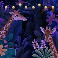 Ontzettend leuk voor op de slaapkamer van uw kind, deze vrolijke en gezellige afbeelding van een nachtelijke safari.