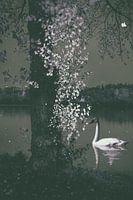 Night at Swan Lake, Swan Lake, Swan, eenzaam, zwart en wit, boom, Europa Unterer Inn, Beieren, Neder-Beieren, Nationaal Park, wildernis, vogelparadijs, watervogel, watervogels, stilte, vrede, harmonie, schoonheid, elegantie, glamour, spiegelen, waterniveau, oerwoud, oerwoud, natuur, dieren, ornithologie, milieu