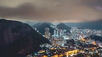 Mooi uitzicht van verlichte stad Rio de Janeiro in de avond. Met een klein beetje laaghangende wolken.