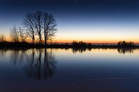 Zonsopkomst boven de Amstel op koude winterochtend. De lucht maakt net de overgang van diep blauw naar oranje