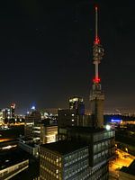 Amsterdam-Buitenveldert. Vanuit de slaapkamer in het Holiday Inn hotel deze nachtfoto gemaakt bij heldere hemel. Op de verre achtergrond de industrie van het Westpoort gebied nabij Sloterdijk.