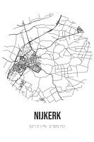 Zwart-witte landkaart, stratenplan of plattegrond van Nijkerk. Nijkerk is gelegen op de Veluwe, in de gemeente Nijkerk, provincie Gelderland. Op de stadskaart zijn alle openbare wegen in Nijkerk opgenomen. Verder is de kaart voorzien van de coördinaten van het centrum van Nijkerk.