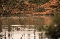 Dit nijlpaard hield ons in de gaten in het schemerlicht.