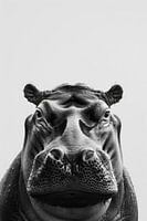 Dit indrukwekkende zwart-wit portret van een nijlpaard legt de indrukwekkende aanwezigheid en rauwe kracht van het dier vast. De gedetailleerde weergave van de robuuste huid en krachtige contouren geeft het beeld een bijzondere diepte en zeggingskracht. Dit kunstwerk is ideaal voor liefhebbers van wilde dieren en fotografische kunst en geeft je woon- of werkruimte een krachtige maar elegante uitstraling.