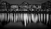 Nijmegen by night. De skyline van Nijmegen met de nieuwbouw aan de Waalhaven. Doordat de zon net onder is en de lucht nog niet helemaal donker, is er een mooie balans tussen de lucht en de buitenverlichting. De lampjes worden weerspiegeld in het stille water van de Waalhaven. De Waalhaven, ook bekend als Nieuwe Haven, is een haven in de Nederlandse stad Nijmegen. De haven is gelegen aan de Waal, net voorbij de Nieuwe Hezelpoort en direct naast de Spoorbrug. De haven werd in 1852 en 1853 aangelegd als vervanger van de Oude Haven, die ter hoogte van het midden van de huidige Waalkade gelegen was, en was een industriehaven. Die functie had de haven tot midden jaren '90. Sindsdien is het een vluchthaven en aanlegplaats voor de beroepsvaart. Er liggen ook enkele woonboten. In de jaren '30 werd de haven in het kader van de werkverschaffing uitgebreid in westelijke richting. In deze zelfde periode is de naam gewijzigd van Nieuwe Haven in Waalhaven.