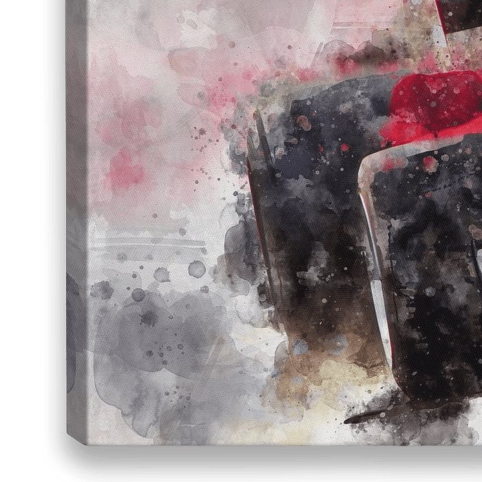 Illustratie van een serie legendarische Formule 1-racers en hun coureurs. Ontworpen uit liefde voor het klassieke racen. Geschilderd met aquarellen op papier.