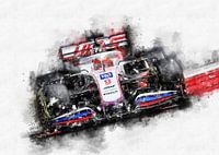 Illustratie uit een serie van wereldberoemde Formule 1-coureurs en hun racewagens.
